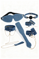 - Includes whip, handcuffs, ankle restraints, hog tie connector, collar, and leash.