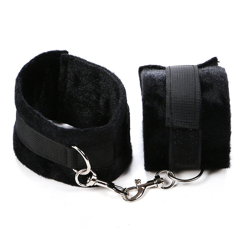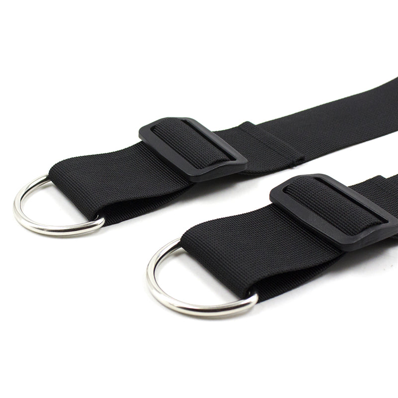 Materials: premium nylon webbing, reinforced resin anchors, metal D-rings, padded cuffs