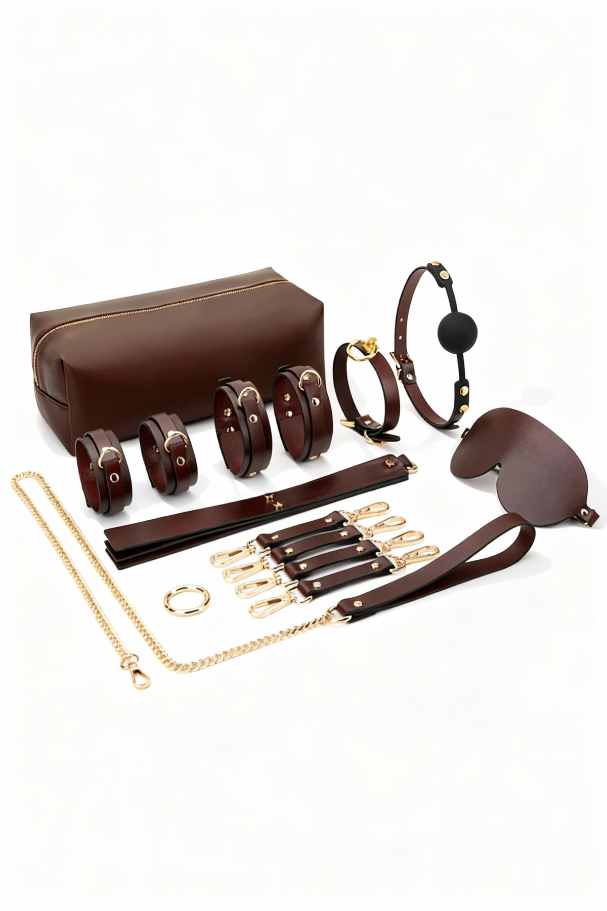 Discover the exciting world of exploration with this luxurious set, perfect for both beginners and experienced adventurers. Made from high-quality vegan leather and featuring gilded hardware, this set offers the ideal combination of sturdiness and sensuality.